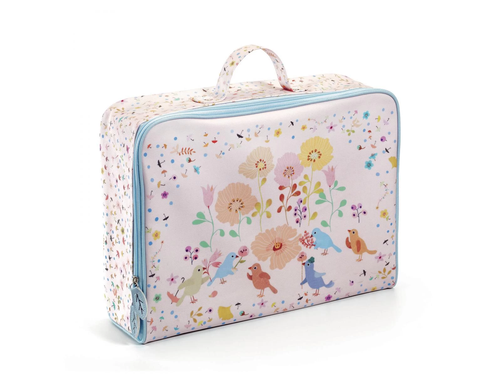 Une valise aux douces couleurs, joliment illustrée d’un décor fleuri et printanier, parfaite pour emporter ses affaires pour les vacances ou le temps d’un week-end. Cette valise est imperméable. Son intérieur textile se compose d’un grand compartiment. Légère, elle se transporte facilement grâce à son anse.