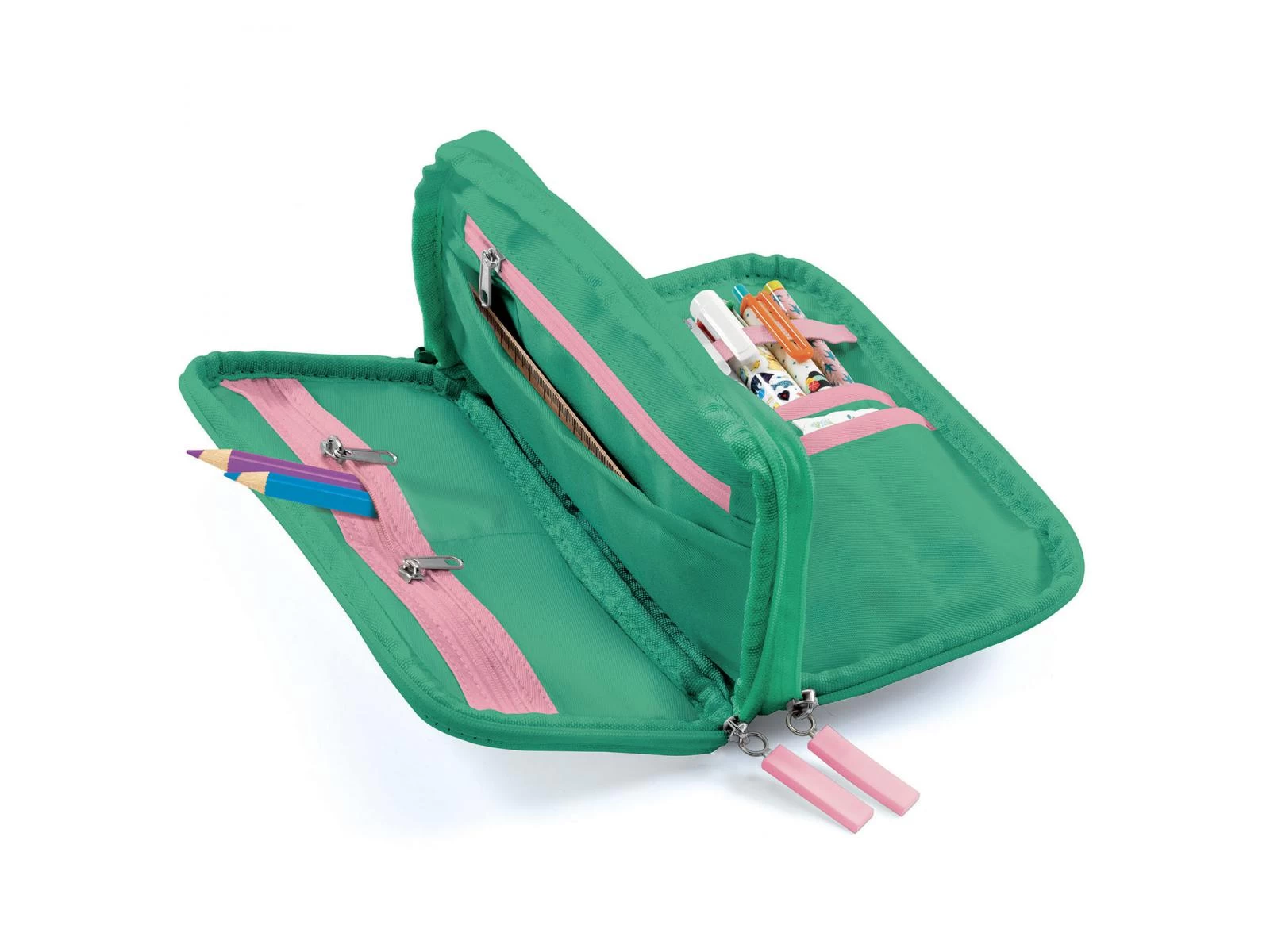 Une trousse dotée de deux compartiments avec de nombreuses pochettes pour ranger correctement toutes ses affaires. Elle est décorée d’un joli écusson brodé d’une fleur. Chaque fermeture à glissière est ornée d’un médaillon en silicone, pour une ouverture facile.