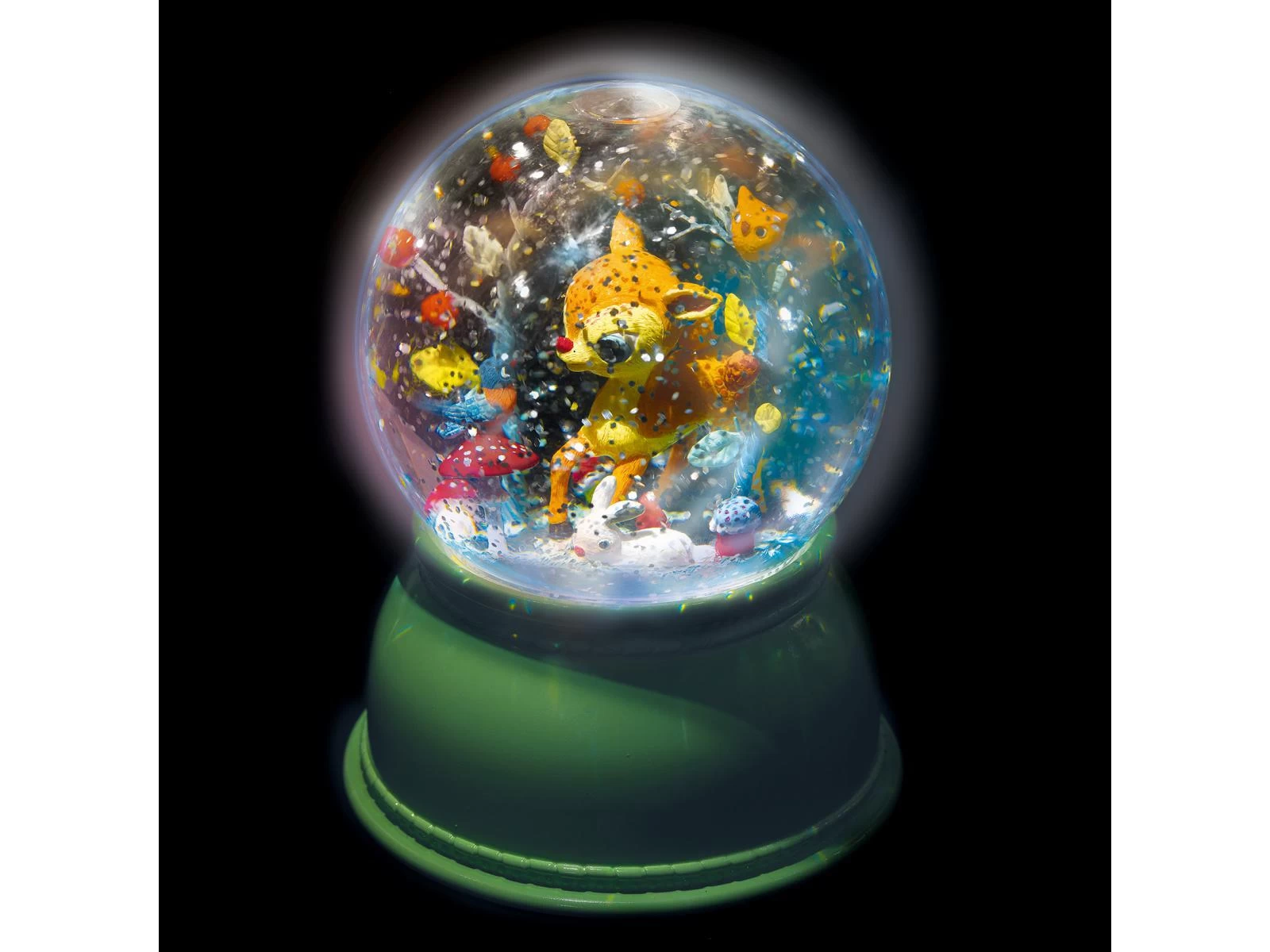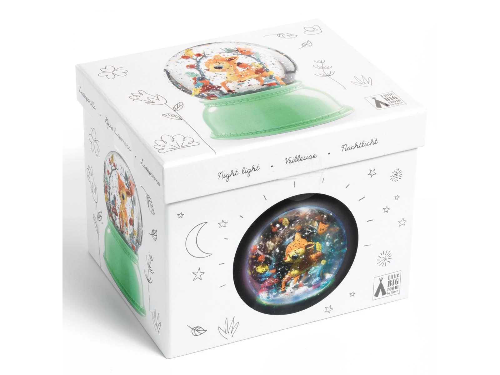 Une veilleuse boule de neige scintillante avec un ravissant faon. Remplie de paillettes, cette veilleuse est équipée d’un mécanisme silencieux qui fait tournoyer les paillettes et diffuse une lumière discrète qui change de couleur. Pour des nuits douces et apaisantes.