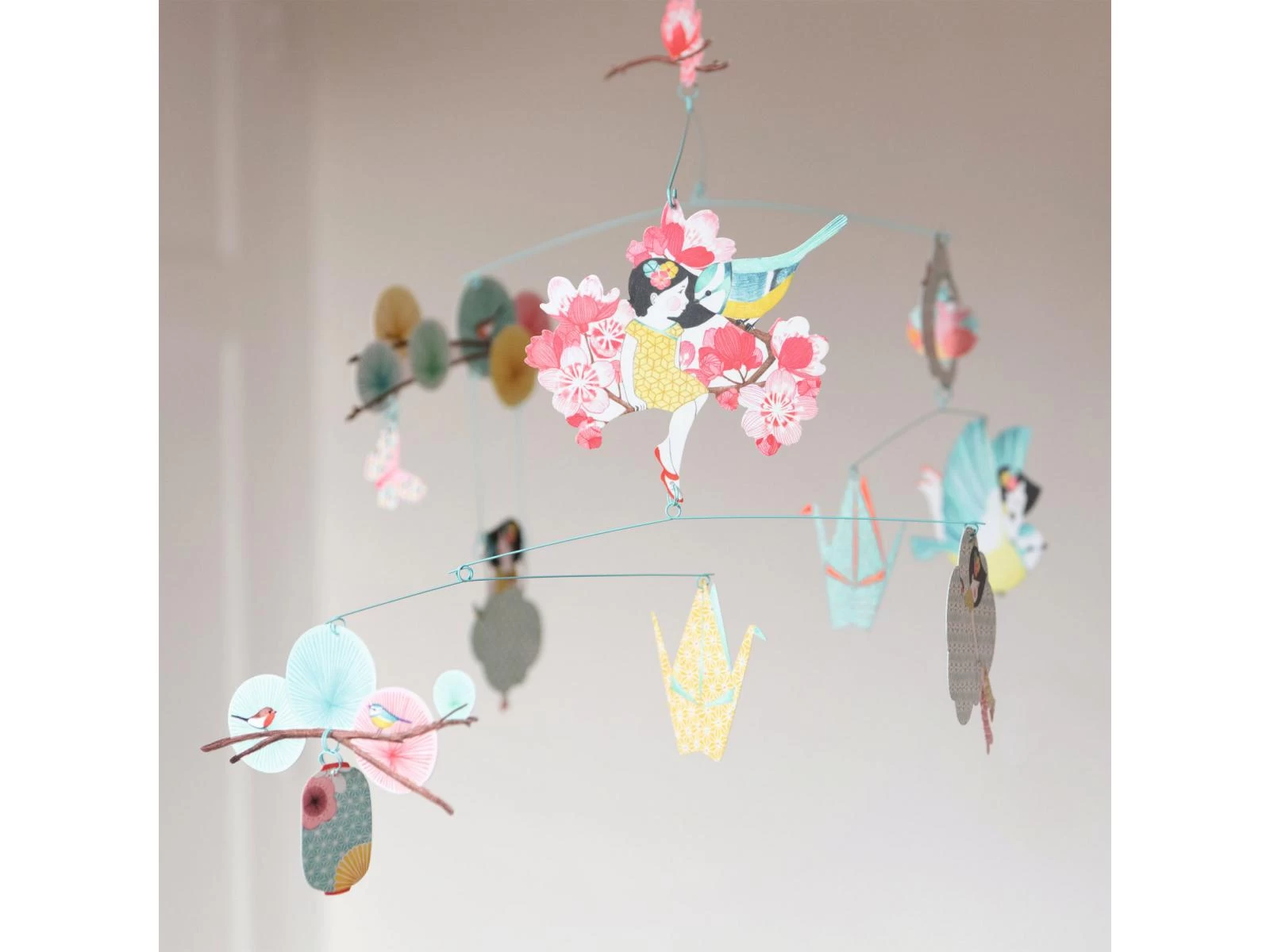 Un mobile très léger aux illustrations douces et printanières. La collection Djeco Mobiles, une rencontre poétique et aérienne entre deux mondes, le design et l’illustration. Un subtil jeu d’équilibre entre rêve et réalité.