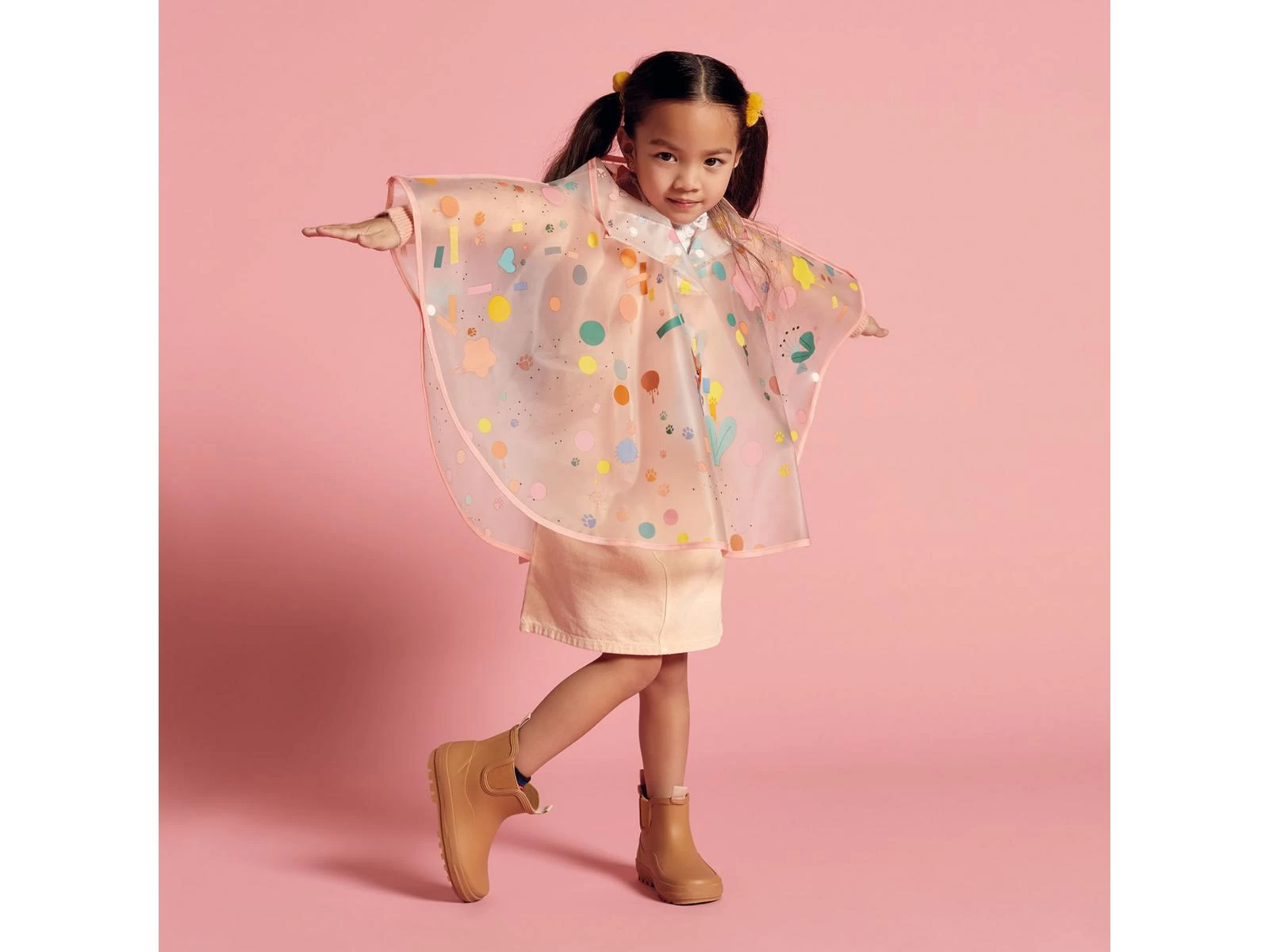 C’est parti pour une joyeuse balade sous la pluie ! Une cape de pluie avec capuche (3-5 ans), chic et pratique. Douce et souple, elle est agréable à porter et accompagne l’enfant dans ses mouvements. Elle s’enfile facilement grâce à ses boutons pression. Un accessoire idéal pour égayer les sorties sous le pluie !