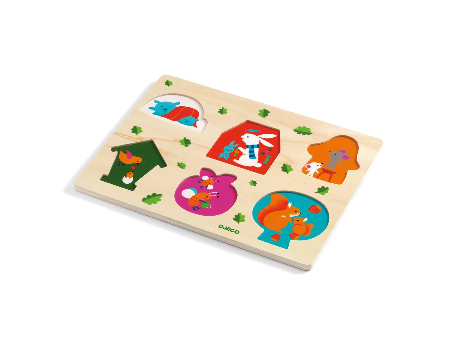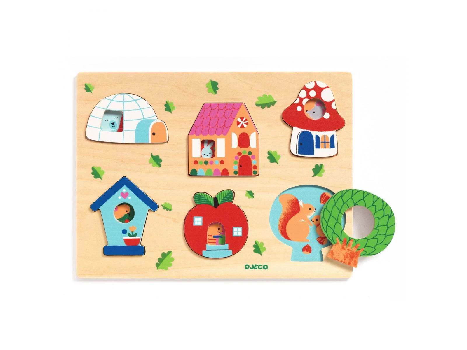 Coucou-house est un puzzle en bois sur le thème de la maison.