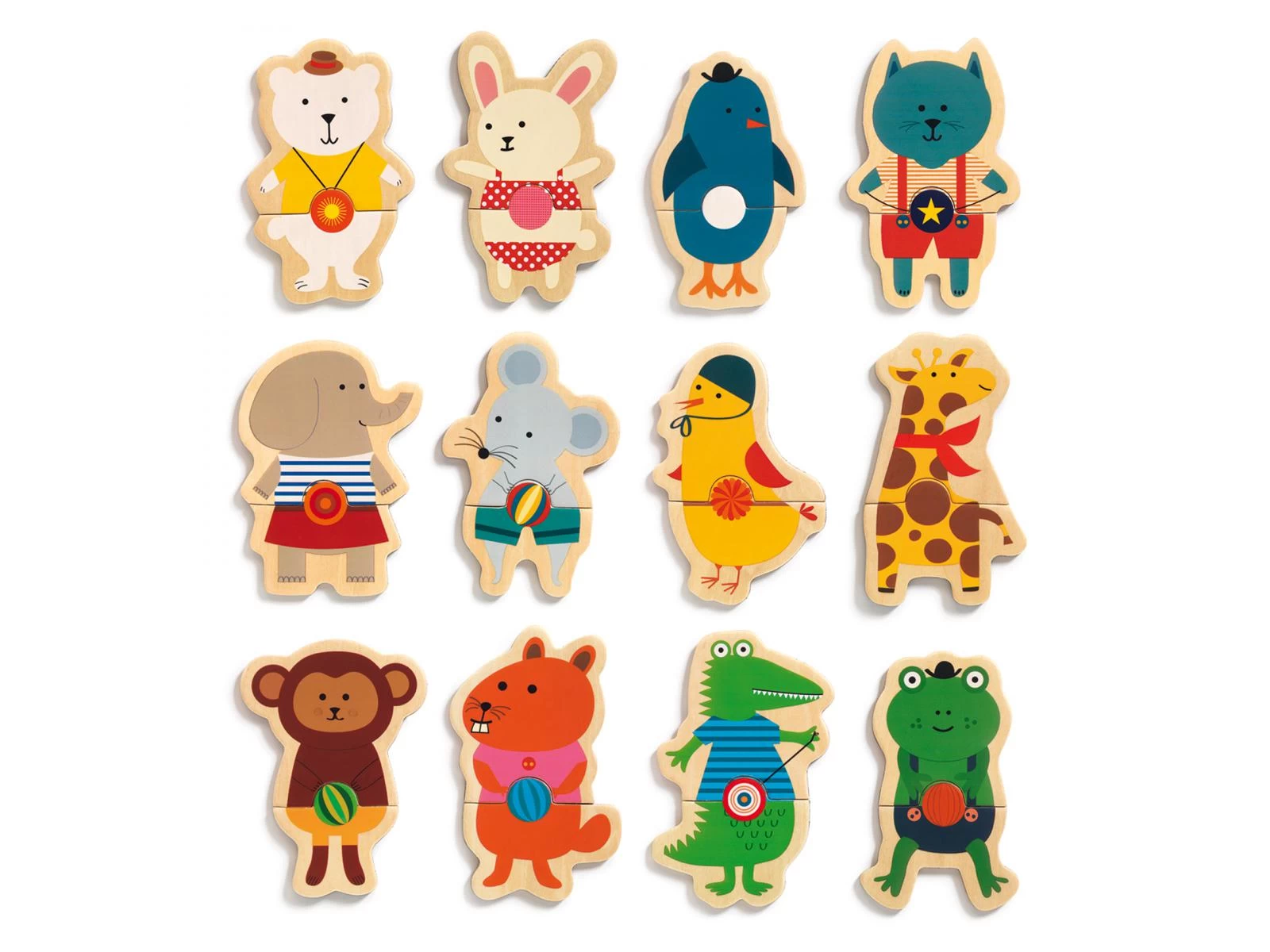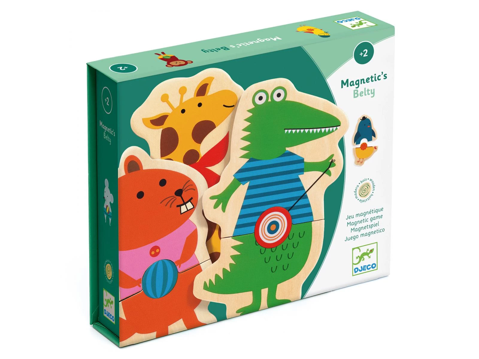 Un coffret de 24 pièces magnétiques en bois pour créer des animaux les plus imaginaires et les farfelus possible. L’enfant aide le poussin à retrouver ses pattes !