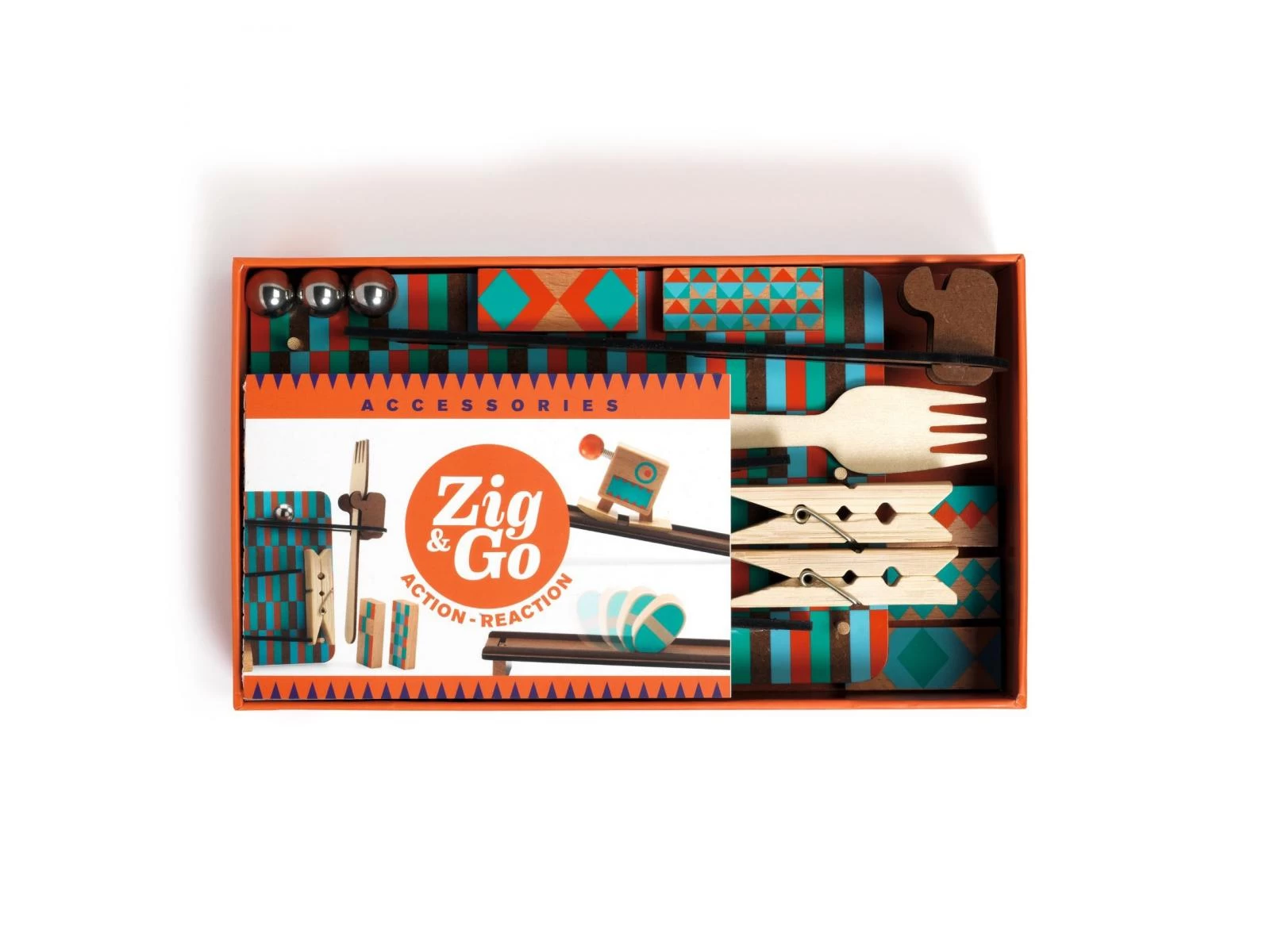 Un jeu de réaction en chaîne, de réflexion et de construction en bois pour compléter sa collection Zig & Go. L’enfant ajoute cet accessoire pour construire son parcours ou en imagine d’autres à l’infini. Ce jeu à partir de 8 ans est compatible avec tous les coffrets de la collection pour inventer des parcours action-réaction encore plus ingénieux !