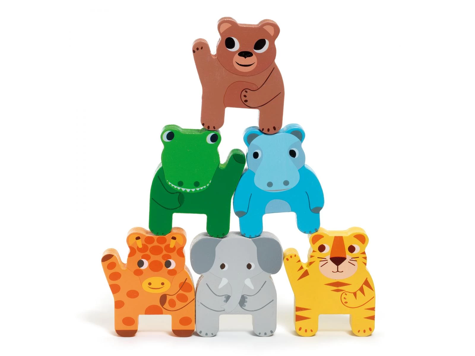 Un grand train coloré, en bois, avec des passagers animaux de la jungle. L’enfant s’amuse à placer les 11 animaux sur les 6 wagons et les promène à l’aide du lacet. Lorsqu’ils descendent du train, les animaux tiennent debout et l’enfant peut s’amuser à jouer avec autant qu’il le souhaite !