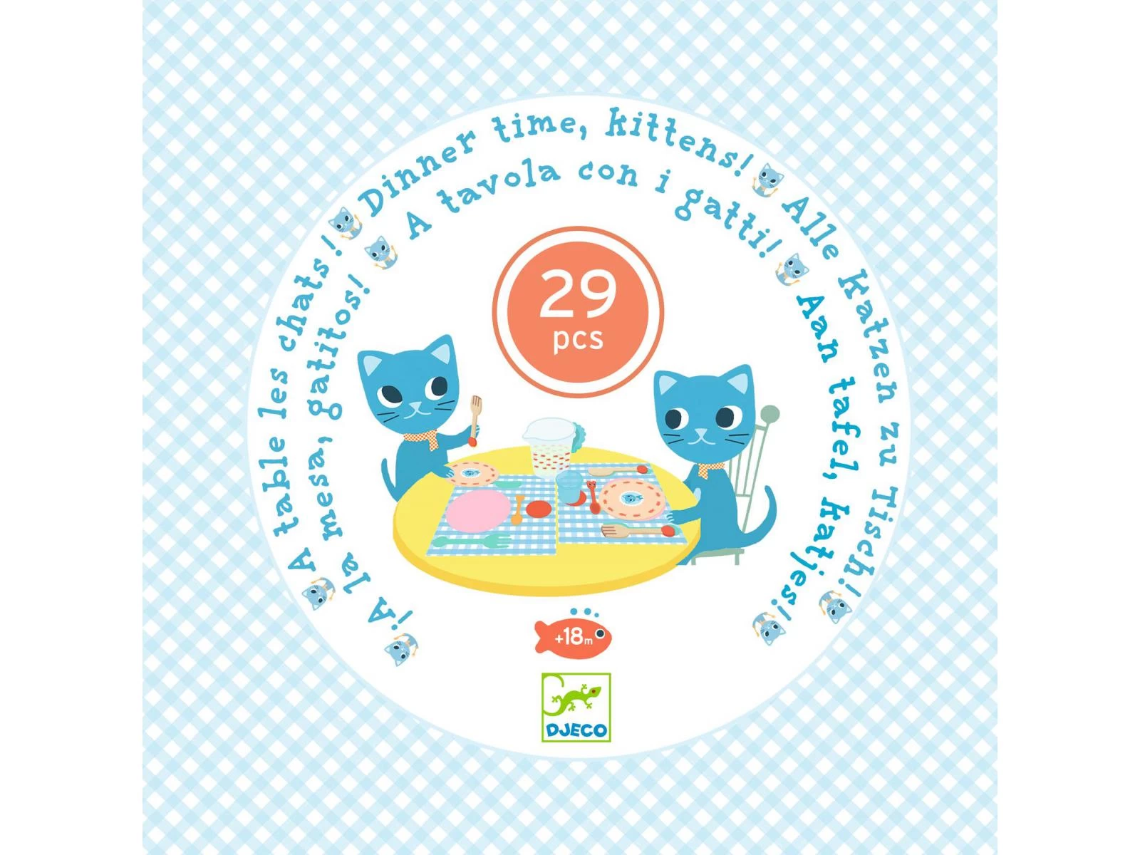 À table les chats est une dînette pour éveiller les tout petits aux différentes séquences d’un repas. Dans une belle boîte cylindrique, tous les accessoires nécessaires pour préparer un repas à deux. La manipulation des pièces promet un riche apprentissage des formes, des couleurs et de l’adresse pour organiser un repas pour 2 personnes. À partir de 18 mois.