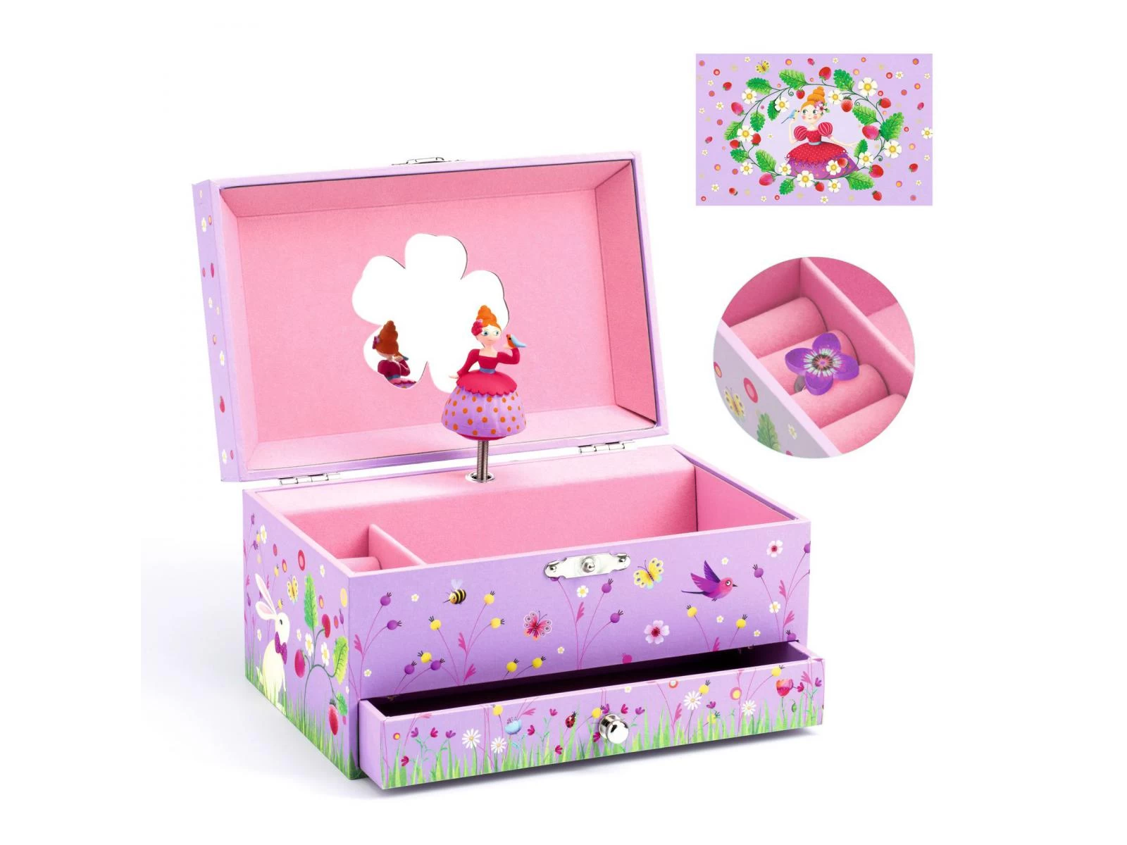 Mélodie de la princesse est une boîte à musique avec un tiroir pour ranger ses bijoux et secrets. Tournez la manivelle, ouvrez la boîte et surprise : une princesse finement sculptée tourne et se reflète sur un miroir silhouetté au son de la musique « La flûte enchantée » de Wolfgang Amadeus Mozart.