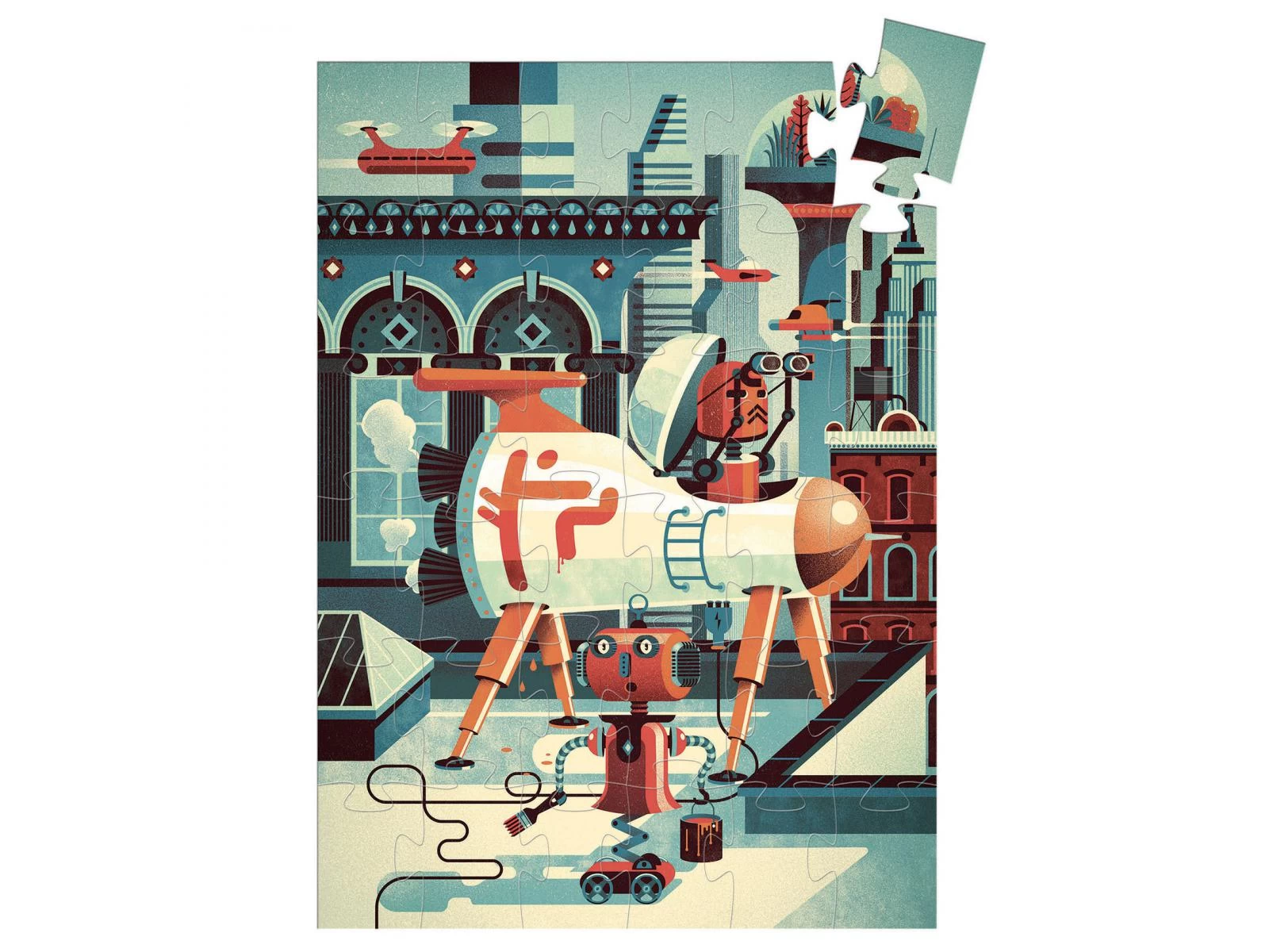 Bob le robot en pleine peinture spatiale. Un magnifique puzzle de 36 pièces en forme de robot.