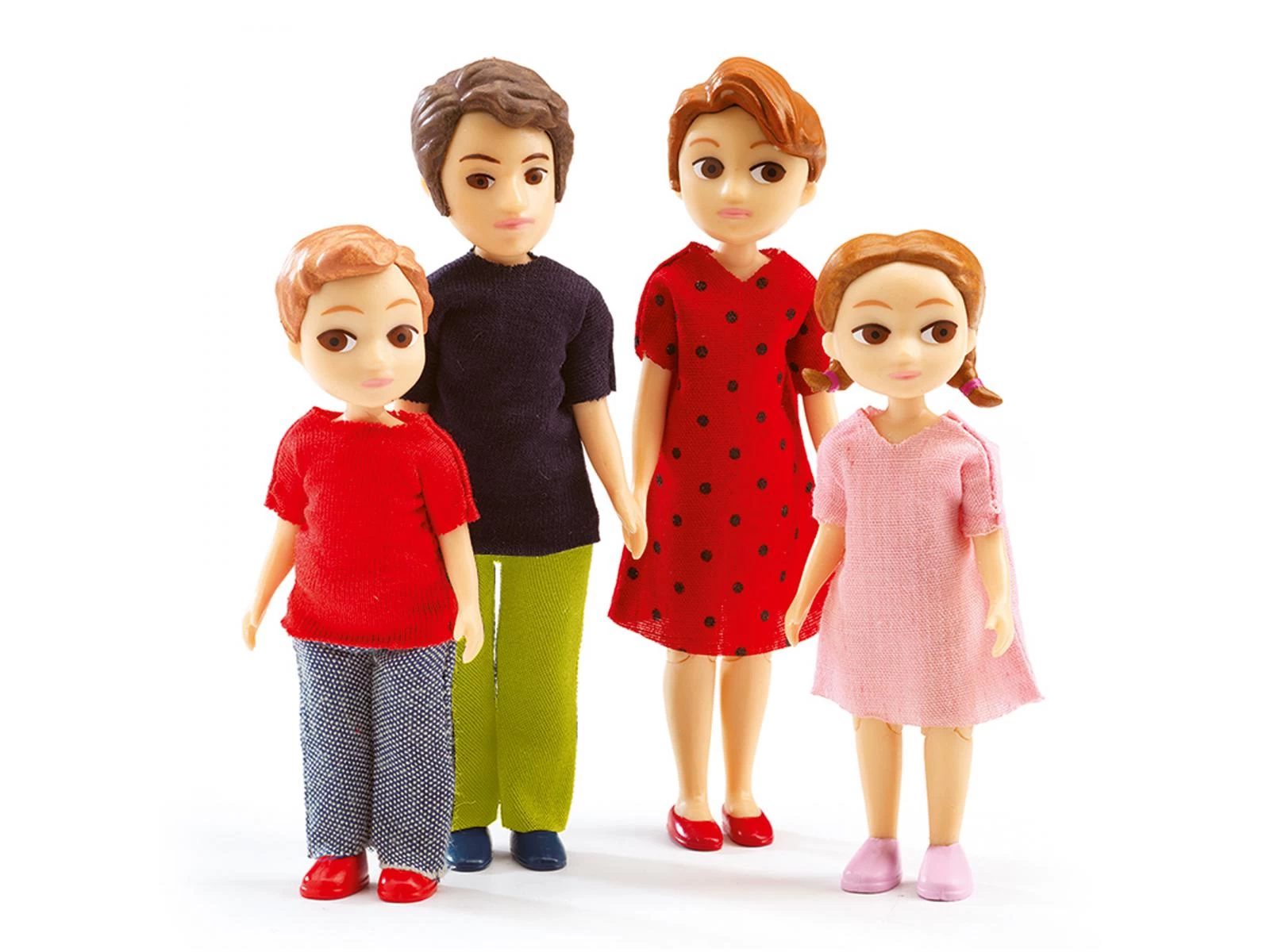 Un coffret de 4 figurines articulées (2 adultes et 2 enfants). Ces personnages sont spécialement conçus pour les maisons de poupées, et s’adaptent à tous les mobiliers afin de permettre aux enfants de leur inventer une histoire.