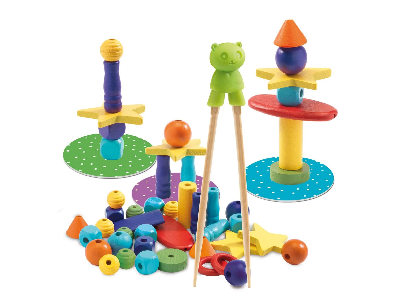 Un jeu d’adresse et de rapidité. D’abord, chacun se précipite pour attraper les bonnes pièces en bois avec les baguettes, puis, très délicatement et en restant zen, il faut être le premier à construire son totem sans qu’il tombe !