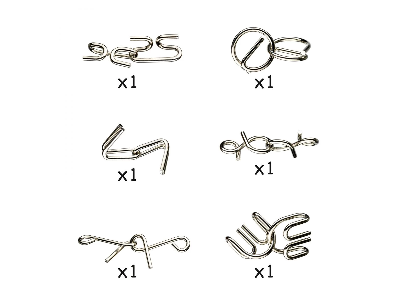 Un jeu de patience avec 6 beaux casse-tête en métal pour mettre à rude épreuve les neurones ! Le but : séparer les 2 pièces de métal sans forcer…