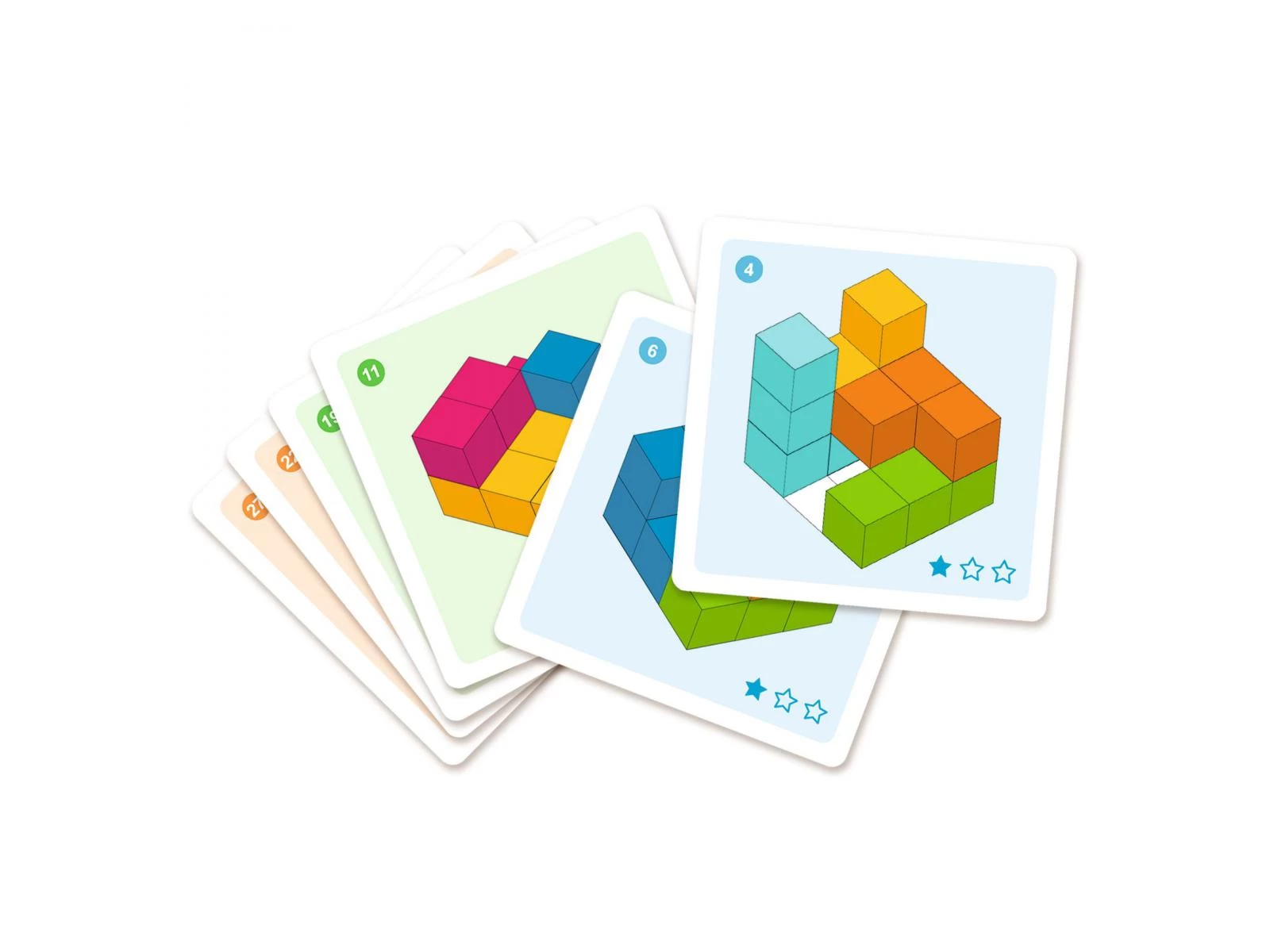 Un jeu de casse-tête dans lequel il faut reconstituer un cube parfait à chaque défi, en utilisant les 7 pièces en bois. Des positions de départ sont imposées et une seule combinaison est possible pour chaque défi. Au total, 30 défis à relever avec des niveaux de difficulté croissants. À vos méninges !