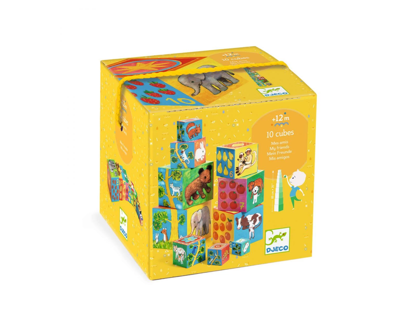 10 cubes gigognes en carton épais à emboîter, empiler et faire tomber à volonté ! L’enfant empile les cubes de façon à ce que les illustrations créent une suite logique.