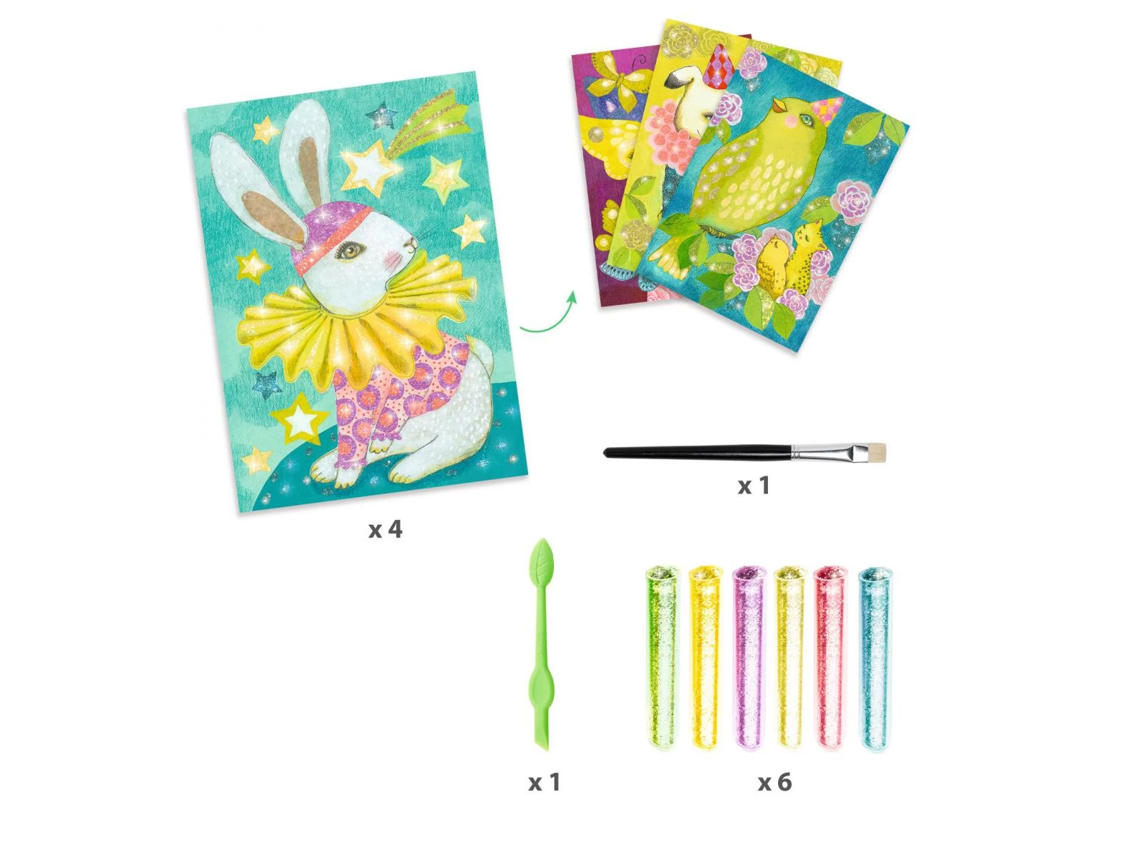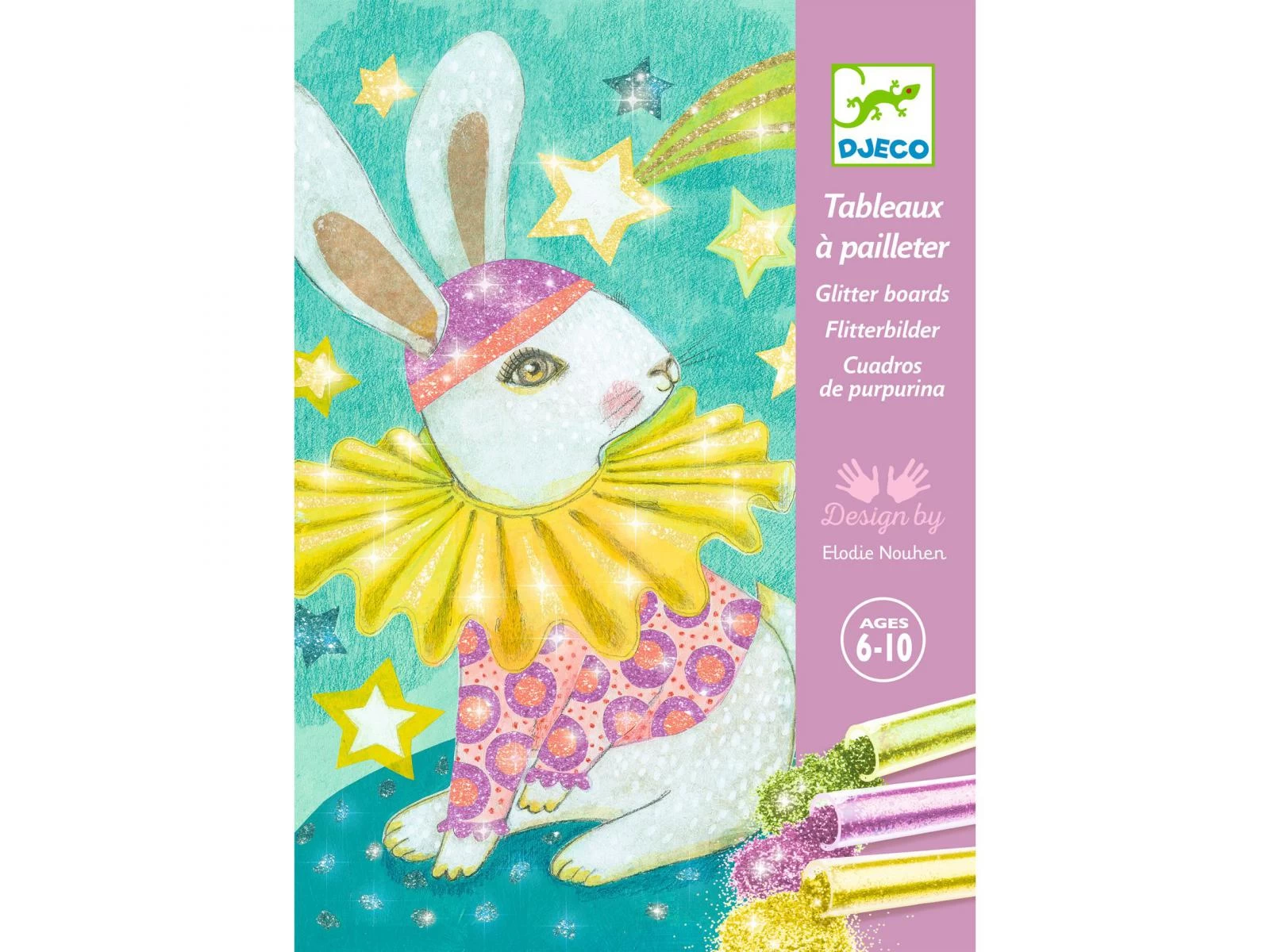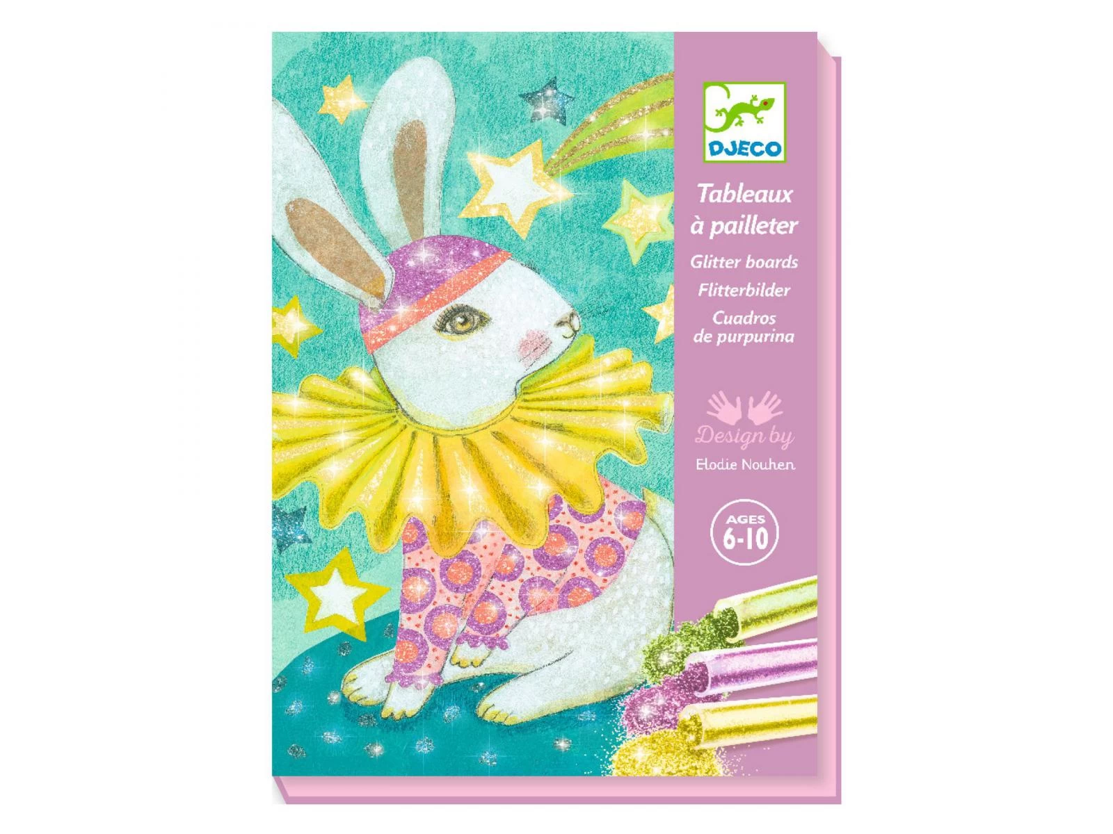 Chapeaux, masques et costumes brillent de mille feux pour un carnaval illuminé ! L’enfant place son tableau dans la boîte, il dévoile les zones préencollées grâce à l’outil fourni, puis les saupoudre de poudre pailletée en suivant le code couleur indiqué dans le livret. Une fois l’activité terminée, les 4 tableaux s’illuminent pour le plus grand plaisir des enfants !