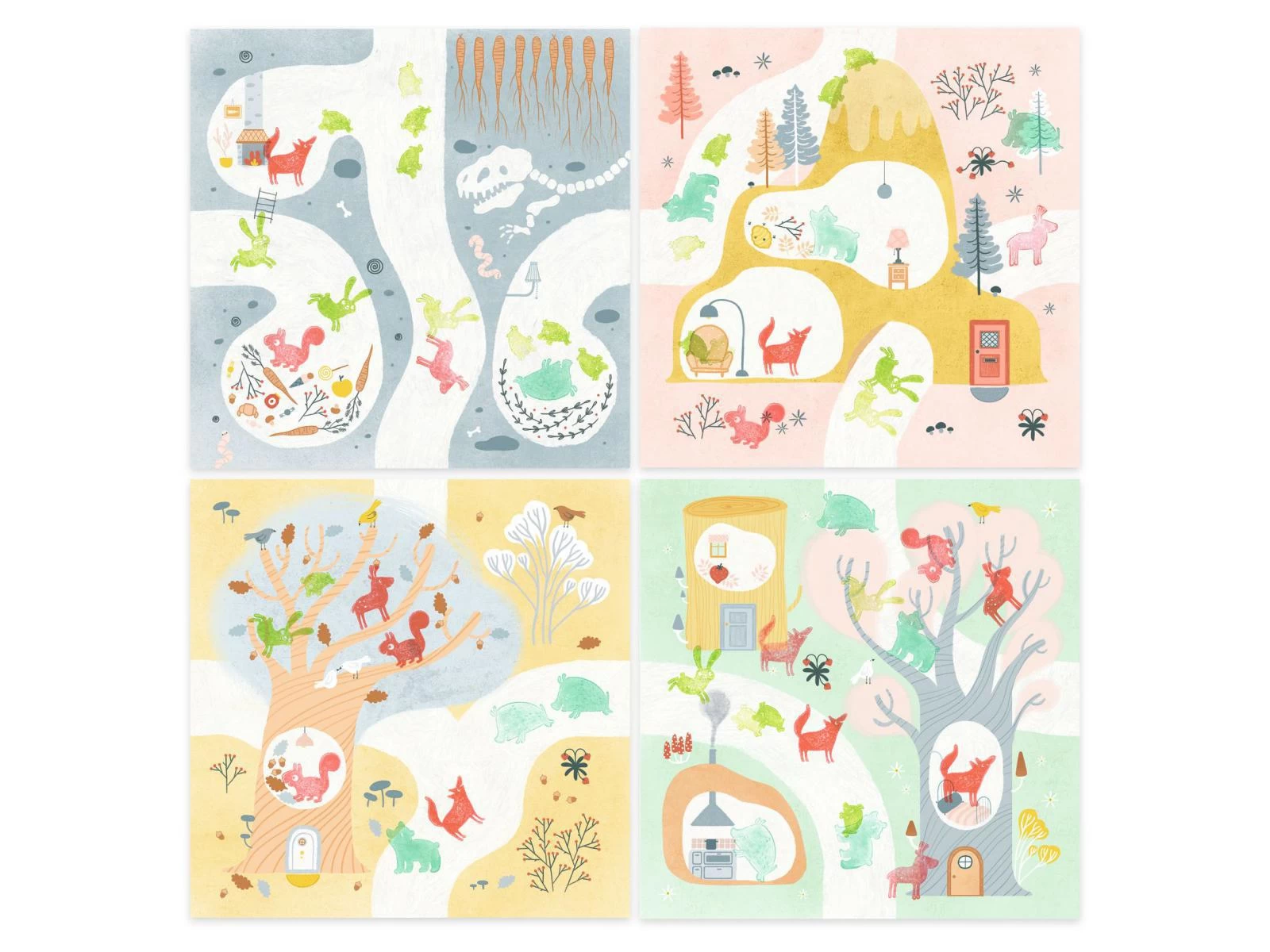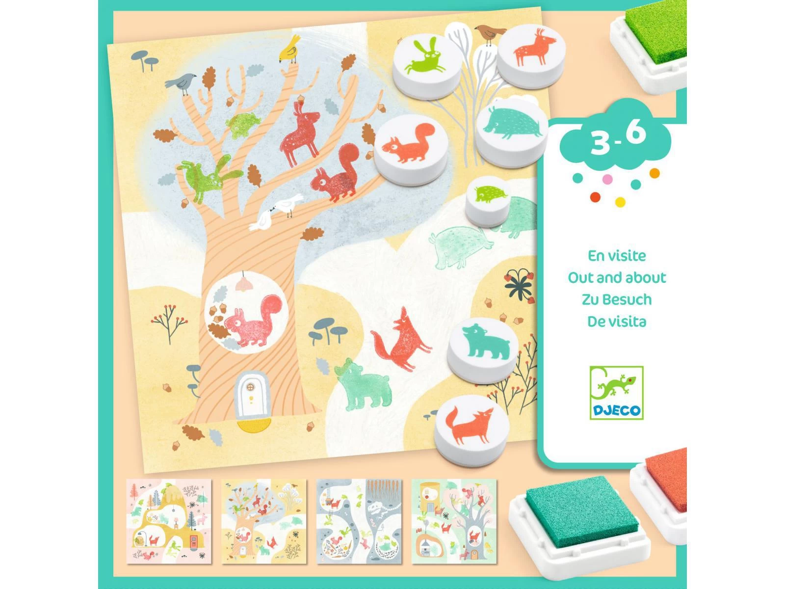 Progressivement, il encre les tampons et marque les empreintes pour animer les décors en laissant libre cours à son imagination. Les cartes s’assemblent pour créer de fabuleux parcours !