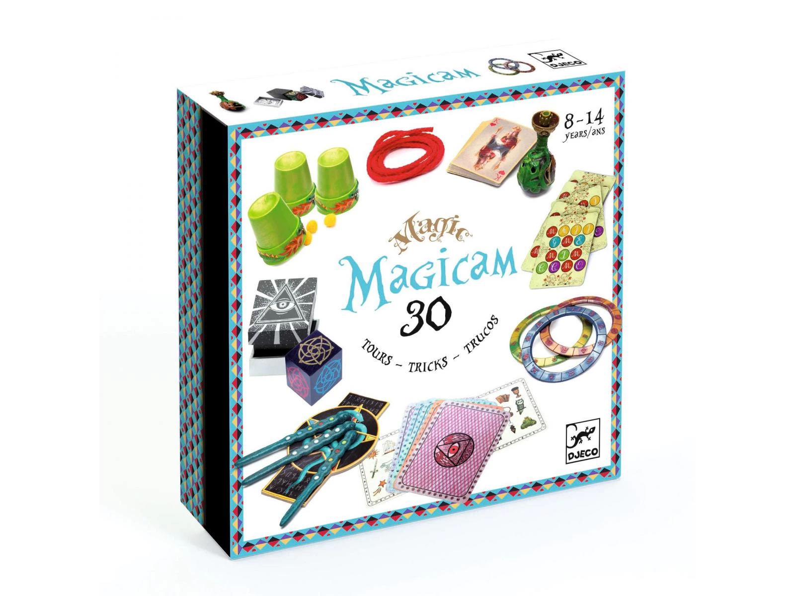 Découvrez Magicam de Djeco, le grand coffret de magie pour réaliser 30 tours de magie et devenir un magicien talentueux ! Disparition, apparition, évasion, prédiction, cartomagie… avec un peu d’entrainement le jeune magicien présentera un véritable spectacle !
